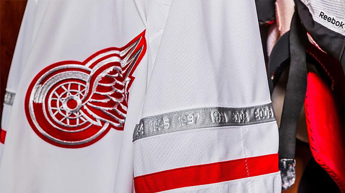 Ani dres Detroitu nemá svůj přesný předobraz v historii. Ovšem inspirace je zřejmá i zde. V sezóně 1928/29 oblékal tým Detroit Cougars trika s přesně těmi pruhy, jaké uvidíme na rukávech jejich současných následovníků.