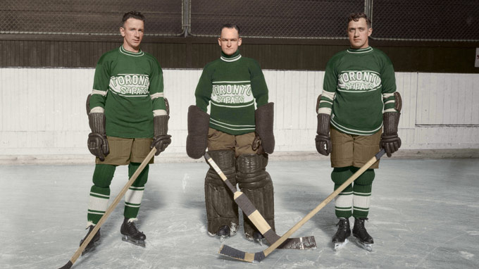 Už v roce 1917, čili právě v historicky první sezóně nastoupil celek Toronto Arenas v dresech s velkým T na hrudi, takovým T, jaké coby dekoraci najdeme na kalhotách letošního dresu.